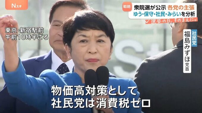 衆院選が公示 各党の主張 ゆう・保守・社民・みらい