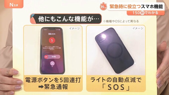 ・SOSのモールス信号のパターンで、自動的に点滅する機能も