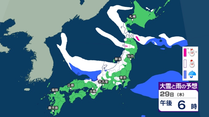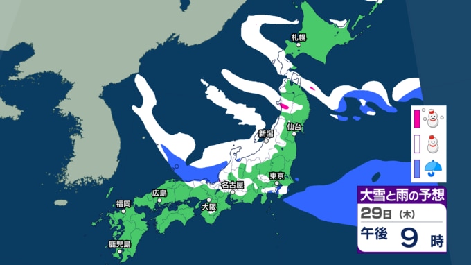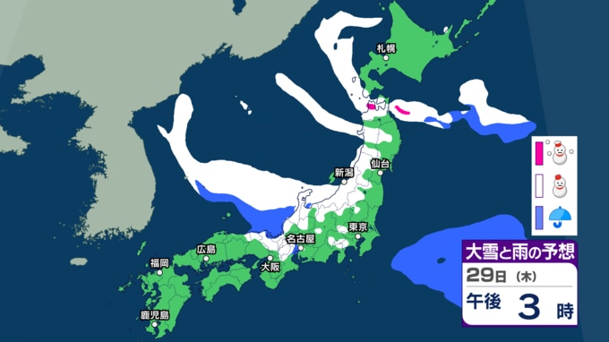 【寒気で日本すっぽり】29日以降、東~西日本の日本海側を中心に再び大雪か 関東南部や四国、九州でも雪予想【気象庁・大雪に関する全般気象情報】