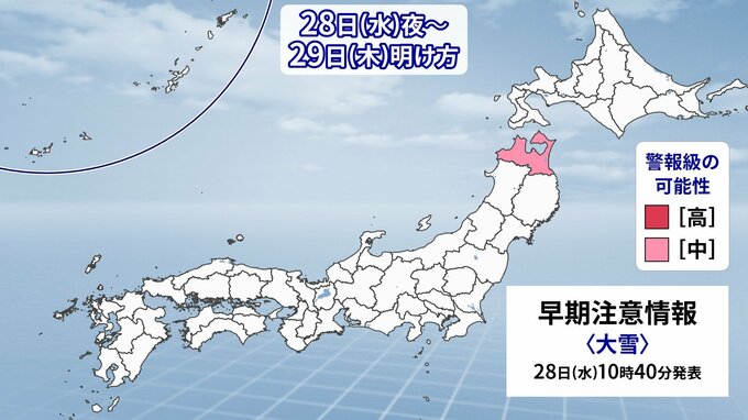 ただ、28日(水)~30日(金)は、鳥取など山陰、近畿、北陸、東北まで警報級の大雪になるおそれがあります。