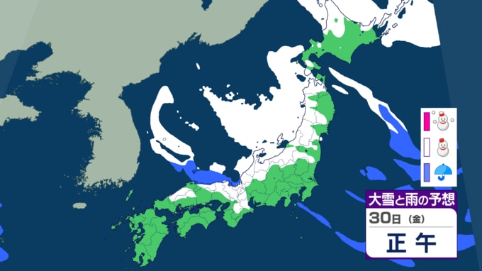 気象庁によりますと、29日(木)から30日(金)にかけて、日本付近は強い冬型の気圧配置となり、上空には今季最強クラスの寒気が流れ込みます。