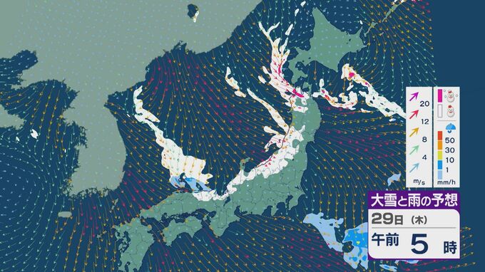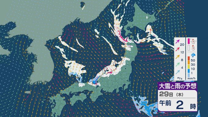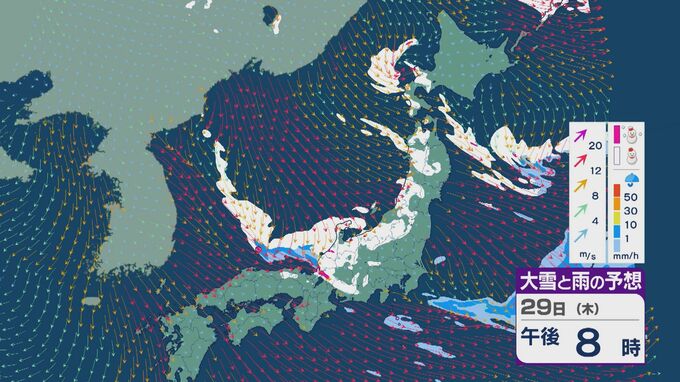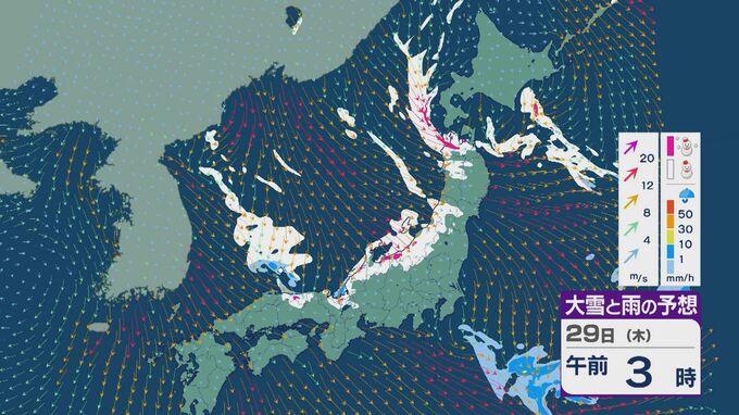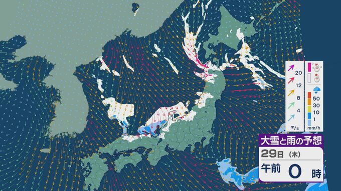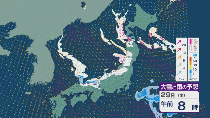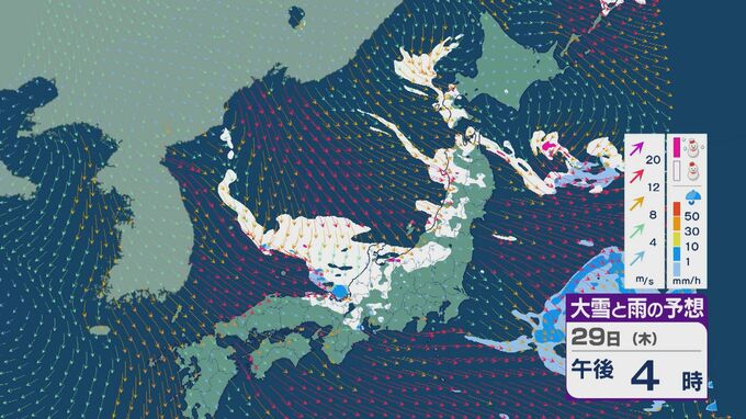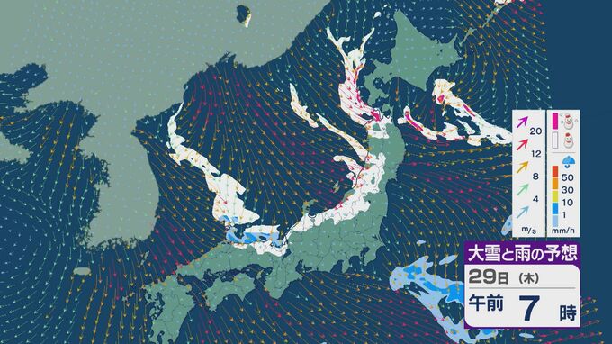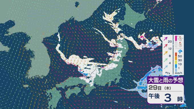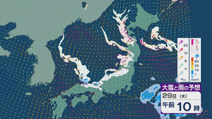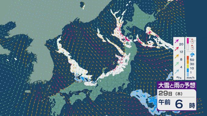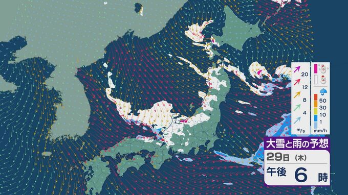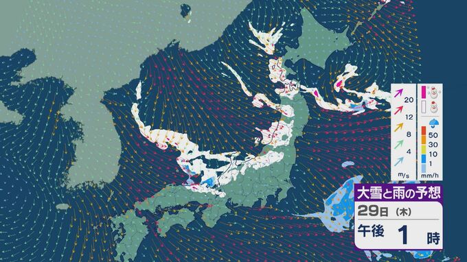 【大雪情報】北陸など日本海側は29日(木)~30日(金)大雪のおそれ 「JPCZ」は西日本日本海側や北陸に 積み重なる雪に注意・警戒を 雪と風シミュレーション 北陸放送 2026年1月28日(水) 11:36 国内 29日の雪と風の予想ですが、山陰から北陸、東北の日本海側で雪が降るでしょう。日本海で風が収束するJPCZ(日本海寒帯気団収束帯)により発達した雪雲は、西日本の日本海側や福井県にかかりそうです。