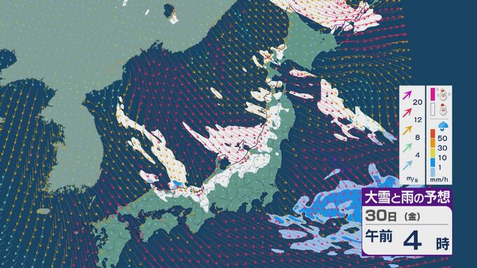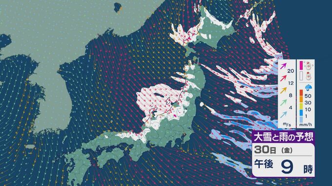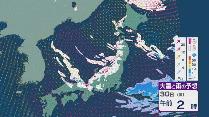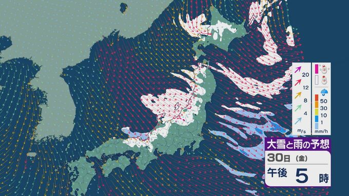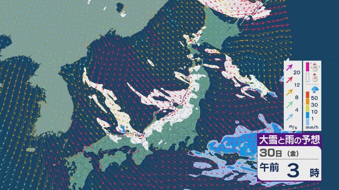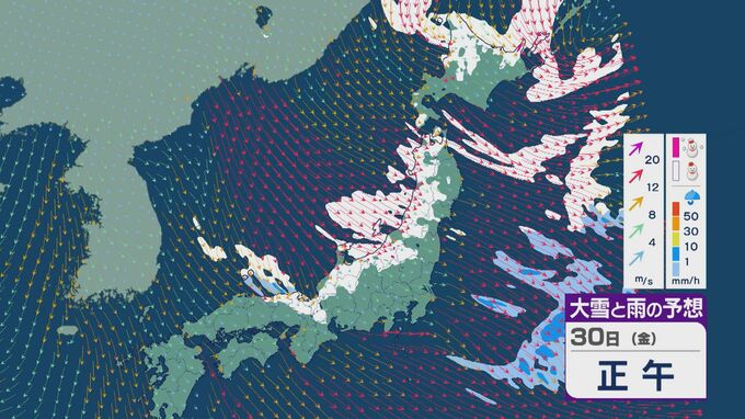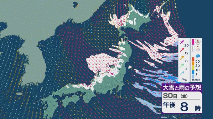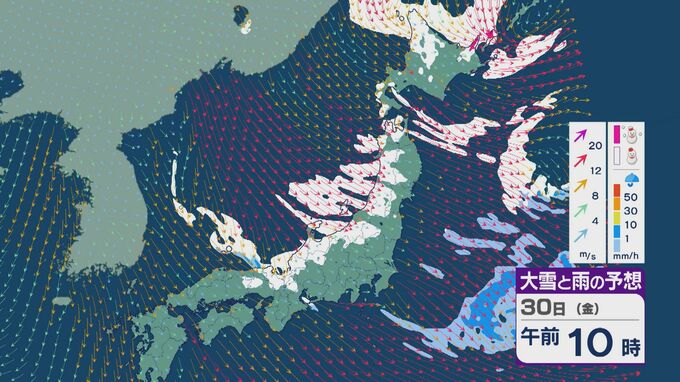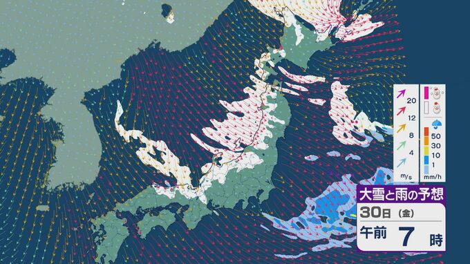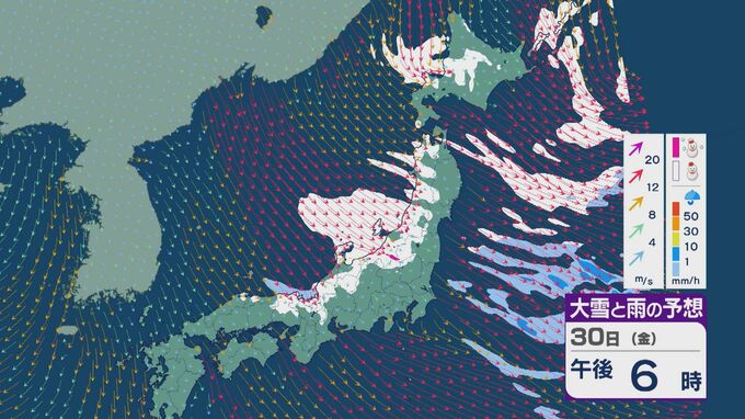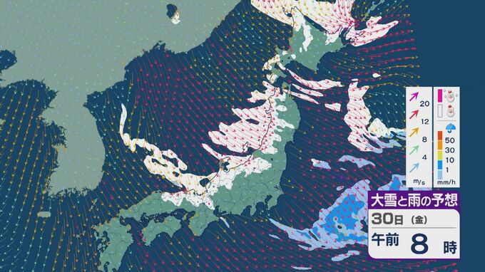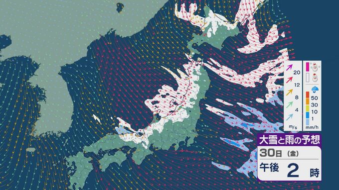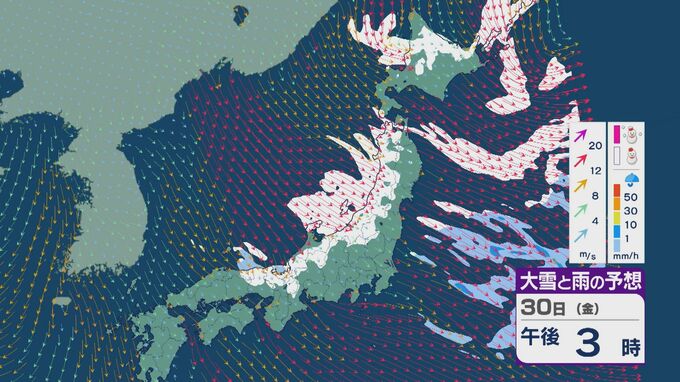 【大雪情報】北陸など日本海側は29日(木)~30日(金)大雪のおそれ 「JPCZ」は西日本日本海側や北陸に 積み重なる雪に注意・警戒を 雪と風シミュレーション 北陸放送 2026年1月28日(水) 11:36 国内 30日(金)も、山陰や近畿北部、北陸から東北の日本海側では、北西の風が強く一日を通して雪が降るでしょう。