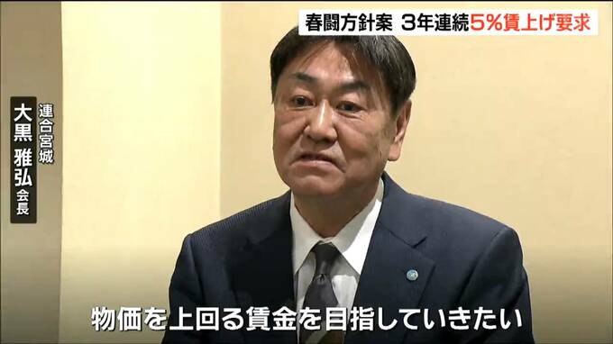 仙台市青葉区で27日開かれた連合宮城の集会には、加盟する労働組合から約100人の組合員が出席しました。連合宮城の2026年の春闘方針案では、3年連続で定期昇給相当分含む5%の賃上げを要求するとしています。