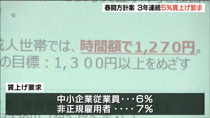 また、企業間や雇用形態別での格差是正に向け、中小企業の従業員は6%、非正規雇用者については7%の賃上げを要求することにしています。