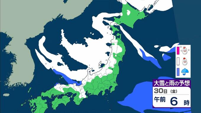 特に29日夜遅くから30日午前中にかけて、雪雲が予想より発達したり停滞した場合には警報級の大雪となる可能性があるということで、気象庁は、積雪や路面の凍結による交通障害に十分注意するよう呼びかけています。