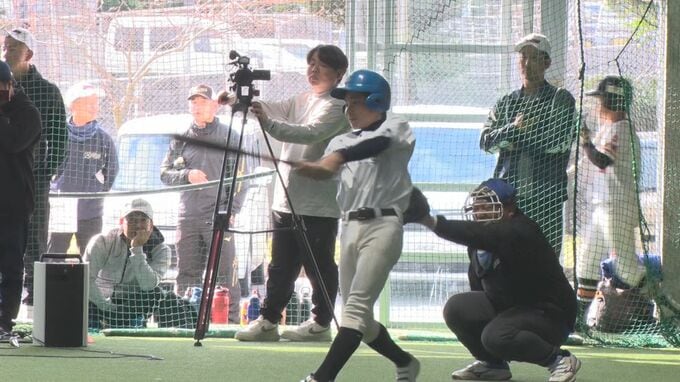 3月に行われるWBCの日本代表に選出されている平良投手の球の速さに、子どもたちは驚きながらバットを振り、なかにはホームランを打って会場を沸かせる様子もみられました。