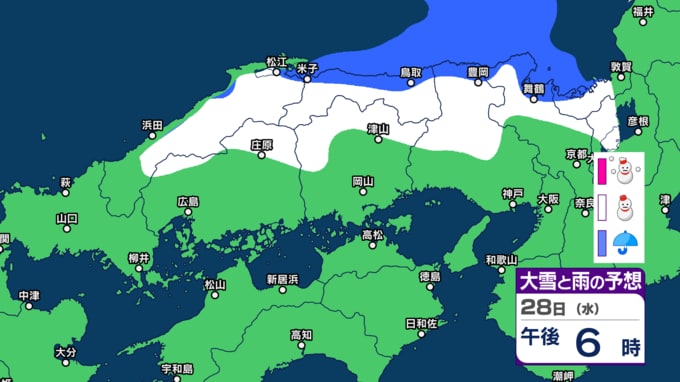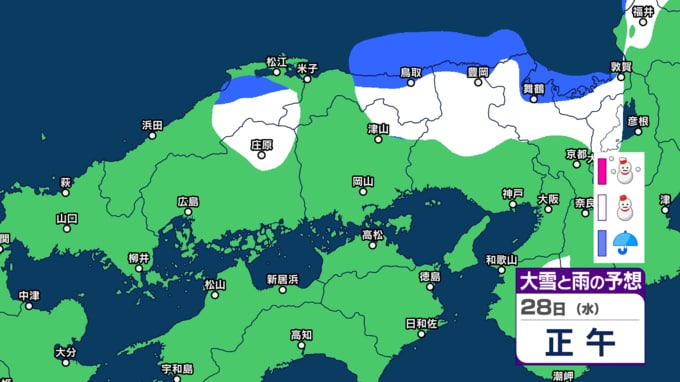 【中国・四国の雪 どうなる?】広島・岡山・山口・鳥取・島根・香川・愛媛・高知・徳島 28日(水)~2月1日(日)雪雨シミュレーション【気象庁 28日】 RSK山陽放送 2026年1月28日(水) 11:50 国内 天気 28日(水) 1 2 3 4