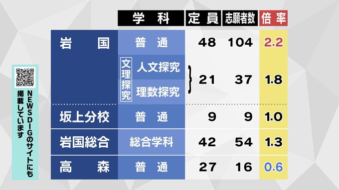 【全校掲載】山口県公立高校入試2026 “特色選抜”志願倍率発表 山口・文理探究3.4倍 徳山は文1.8倍理数3.8倍 全日制1.4倍 【1月28日発表】 テレビ山口 2026年1月28日(水) 17:00 国内 岩国は2.2倍 岩国文理探究は1.8倍