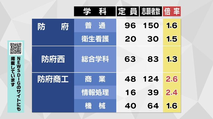 【全校掲載】山口県公立高校入試2026 “特色選抜”志願倍率発表 山口・文理探究3.4倍 徳山は文1.8倍理数3.8倍 全日制1.4倍 【1月28日発表】 テレビ山口 2026年1月28日(水) 17:00 国内 防府 普通1.6倍、防府西1.3倍