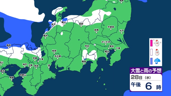 29日から30日にかけて東京、神奈川、埼玉、千葉で雪雲が予想されています。雪にならなくても冷たい雨になるかもしれません。