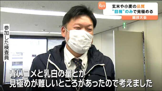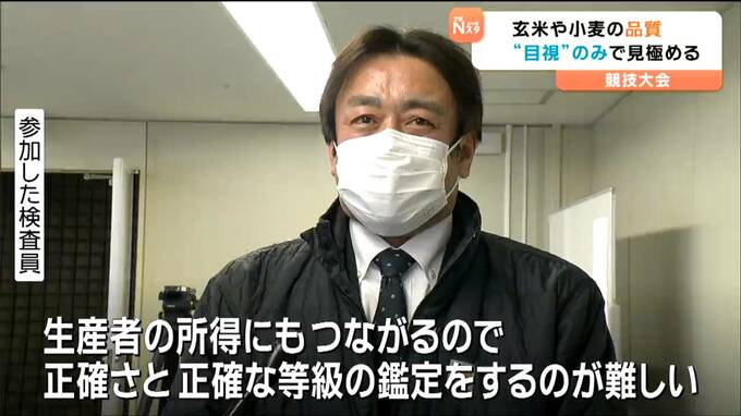 農産物の目利きの腕を競う大会が仙台で開かれ、JAの検査員たちが、玄米や小麦の出来栄えを目視のみで見極めました。