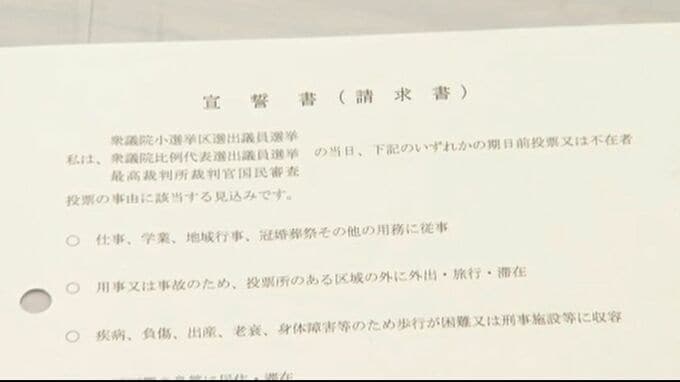 期日前投票した人…「まだ、入場整理券は来ていない。宣誓書は初めて。こういうのもありかなと思った。仕方ないか、こんなに短い期間だから」
