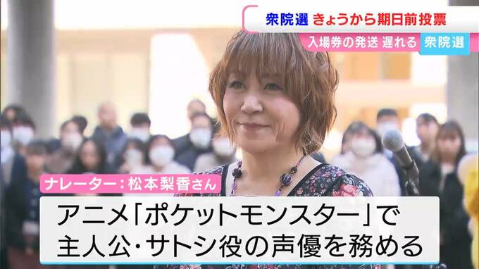 岡山県の選挙管理委員会が製作した広報車です。ナレーターは人気アニメ「ポケットモンスター」で主人公・サトシ役の声優を務め歌手やタレントとしても活動する松本梨香さん。幅広い世代になじみのある声で投票を訴えてほしいと特命広報大使に委嘱されました。おととし行なわれた衆院選の岡山県の投票率は、過去2番目に低い50.24パーセントで、県選管は投票率向上を目指しています。