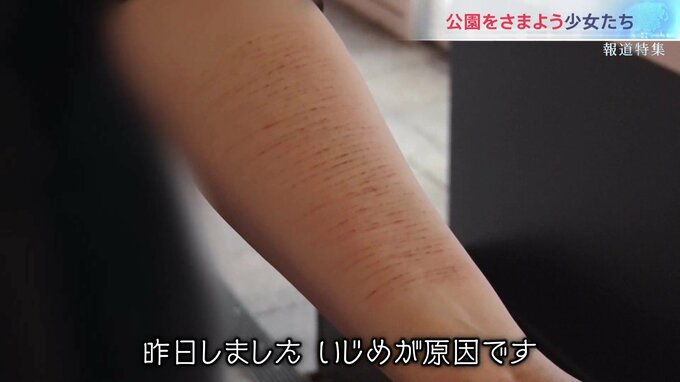 家や学校には居られず、公園が唯一の居場所だと語る少女たち。その体には、リストカットの痕が。