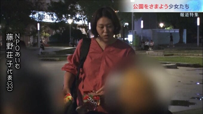 警固公園で夜回り活動をするNPOあいむの藤野荘子代表(33)。