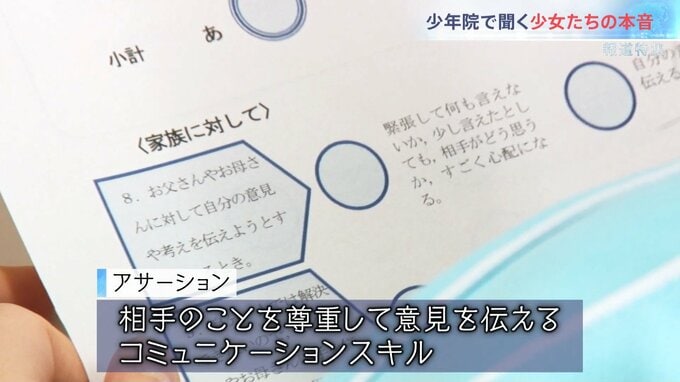 こうした少女たちの更生に向けて、女子少年院で取り組んでいる「アサーション」というプログラムがある。「アサーション」とは、相手のことを尊重して意見を伝えるコミュニケーションスキルのことだ。