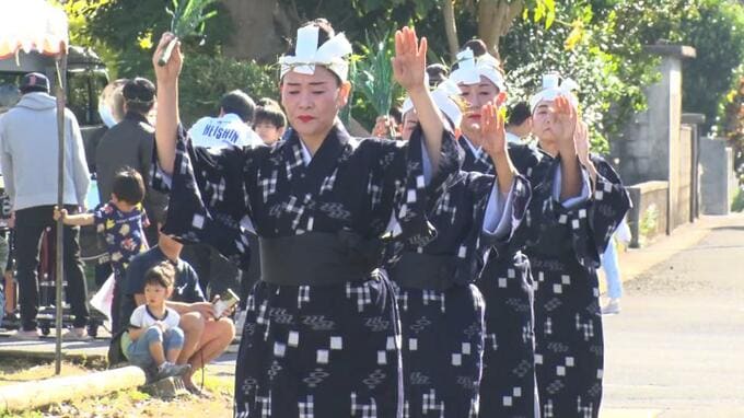 このあと集落内にある大阿母御嶽に場所を移し、旗頭の演舞をはじめ地域の婦人会や老人会による伝統芸能が奉納されました。