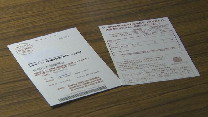投票所に持参する投票入場券。今回の選挙は準備期間が短く、27日までに、この入場券が届かない自治体が多くあります。
