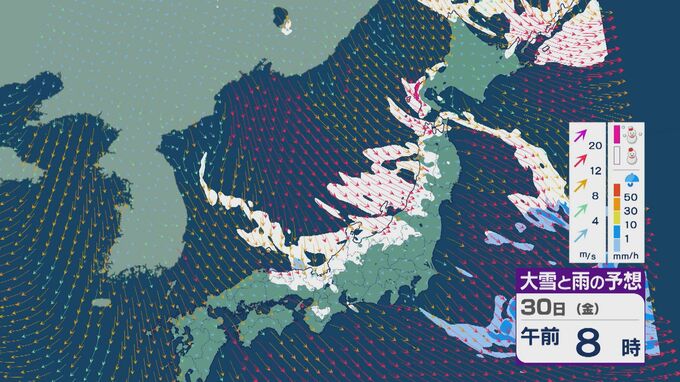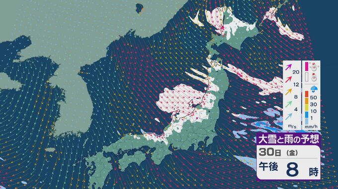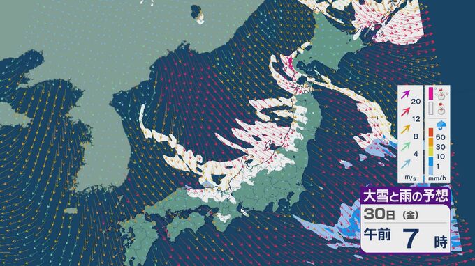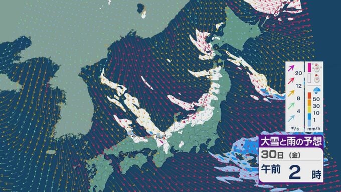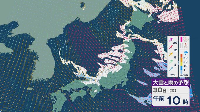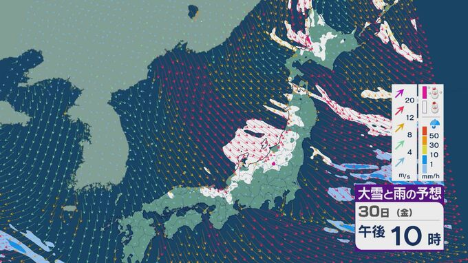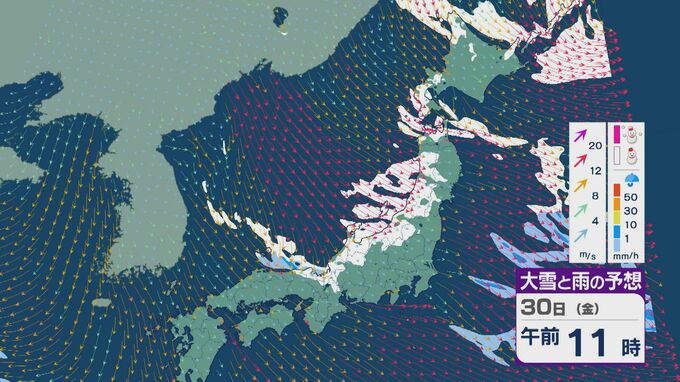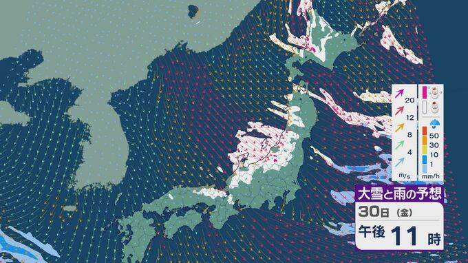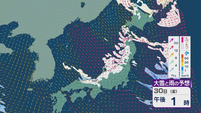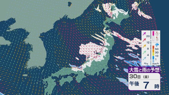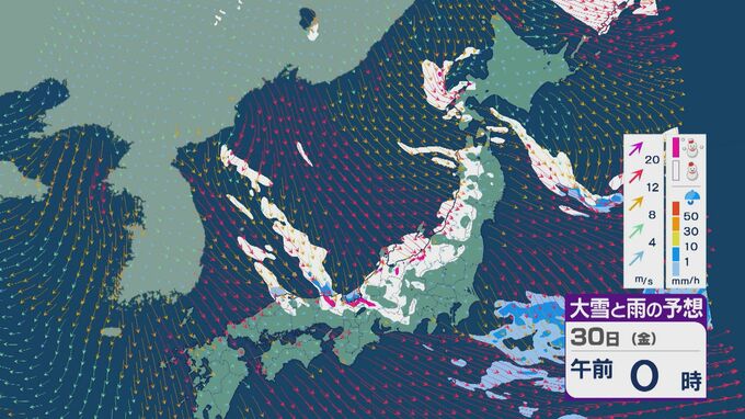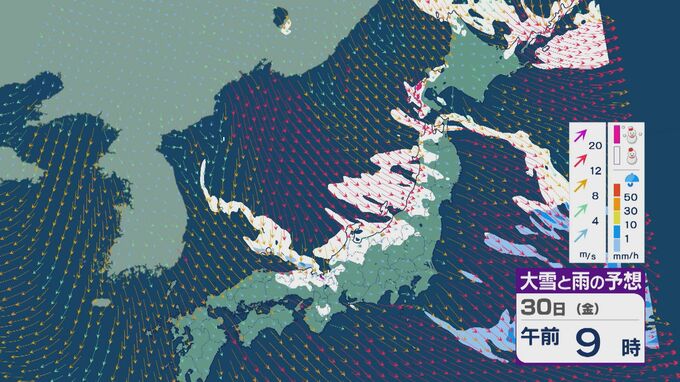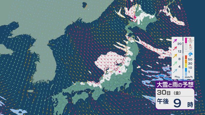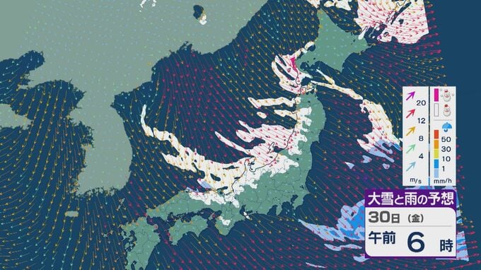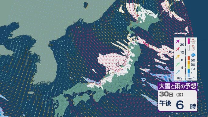 【大雪情報】「JPCZ」による雪雲は29日(木)から30日(金)にかけ西日本日本海側や北陸に 24時間予想降雪量は平地でも石川県は30センチ・福井県は40センチ 積み重なる雪に注意・警戒を 雪と風シミュレーション 北陸放送 2026年1月28日(水) 18:19 国内 30日(金)も、未明や明け方は福井県で雪の降り方が激しいところがありそうです。 山陰や近畿北部、北陸から東北の日本海側では、北西の風が強く一日を通して雪が降るでしょう。