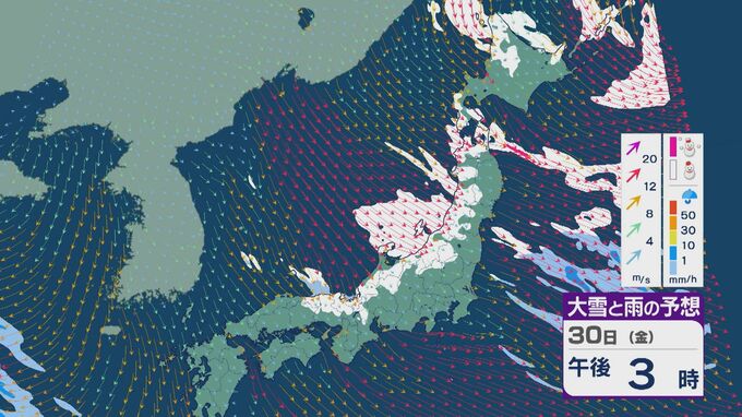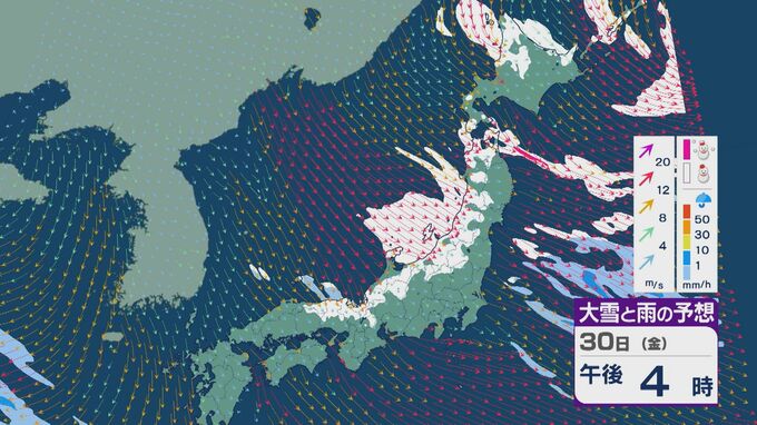 【大雪情報】「JPCZ」による雪雲は29日(木)から30日(金)にかけ西日本日本海側や北陸に 24時間予想降雪量は平地でも石川県は30センチ・福井県は40センチ 積み重なる雪に注意・警戒を 雪と風シミュレーション 2時間前