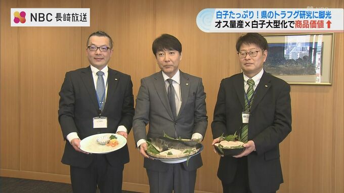 全雄トラフグは通常より1割ほど高値で取引されていて、白子が大きくなることでより養殖業者の経営改善につながることが期待されています。