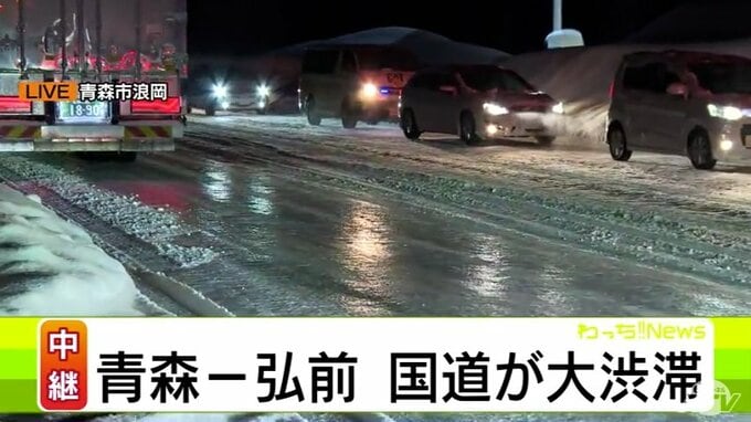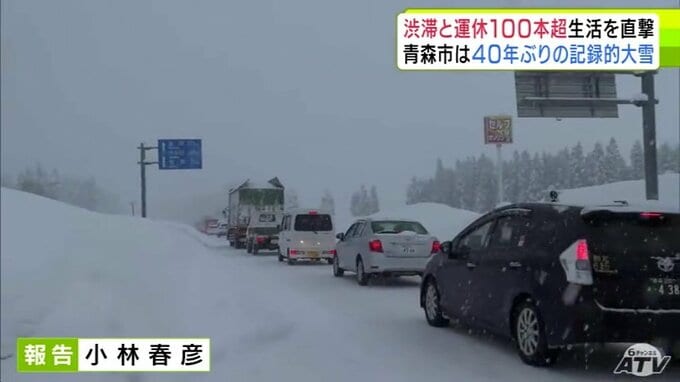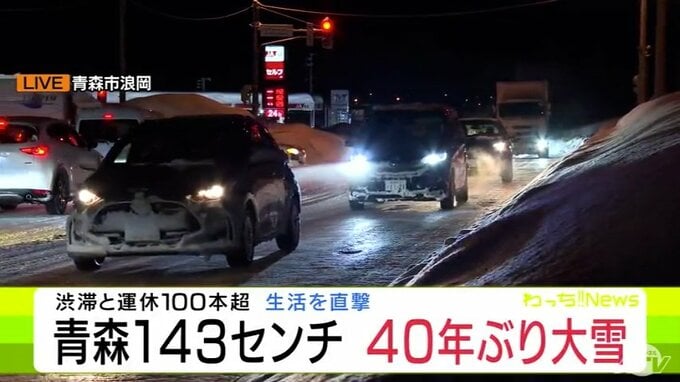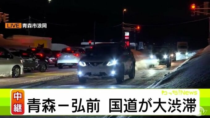【大雪速報】青森県“交通の大動脈”「国道7号」が大渋滞 取材のカメラマンは青森市浪岡で渋滞に巻き込まれ2時間で約500mしか進めず 記録的な大雪が影響 40年ぶりに1月の青森市では積雪140cm到達 2時間前