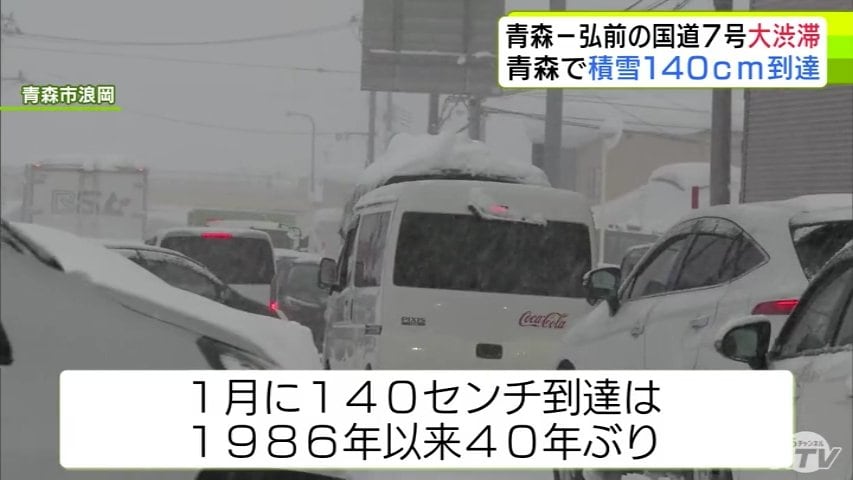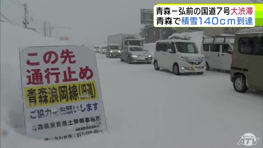 3. 【大雪速報】青森県“交通の大動脈”「国道7号」が大渋滞 取材のカメラマンは青森市浪岡で渋滞に巻き込まれ2時間で約500mしか進めず 記録的な大雪が影響 40年ぶりに1月の青森市では積雪140cm到達