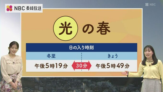 現在の日の入り時刻は午後5時49分で、冬至の頃(午後5時19分)と比べると約30分も長くなっています。「徐々に春を感じられるように日差しも変化しています」と平地気象予報士は説明します。