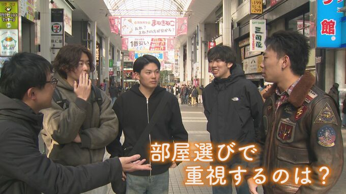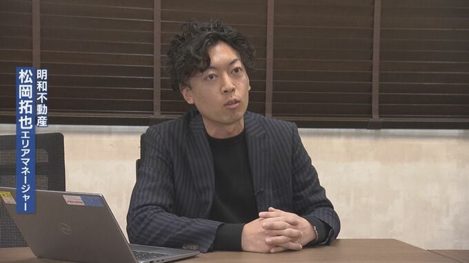 明和不動産賃貸事業部 松岡拓也エリアマネージャー「セキュリティや設備のグレードを重視する学生が増えました。オートロックやインターネット無料も当たり前に近くなってきている。少子化などの時代背景もあって、子ども1人にかける金額が変わってきている」