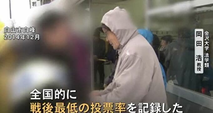 金沢大学・岡田浩教授「2014年の衆議院選挙が雪の地域が多く石川県内でも雪が降り全国的に戦後最低の投票率を記録した。雪が降っていたり非常に寒かったりするとなかなか屋外での選挙活動ができない。」