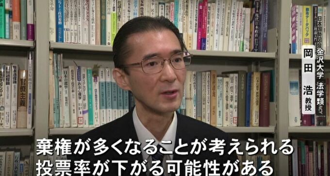 金沢大学・岡田浩教授「どうしても有権者の心理的な投票のコストが高まって棄権が多くなってしまうことが考えられる。投票率が下がる可能性があると思う。」