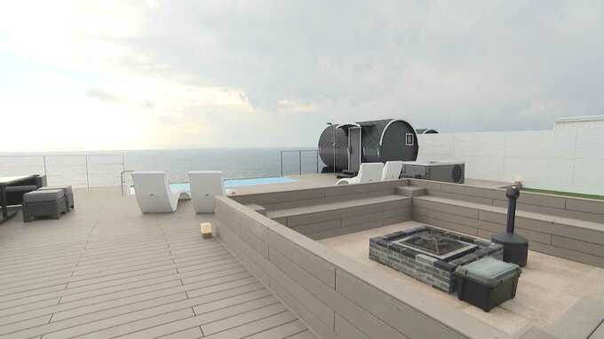 フィンランド製のサウナでは、眺望を楽しみながら身体が整います。