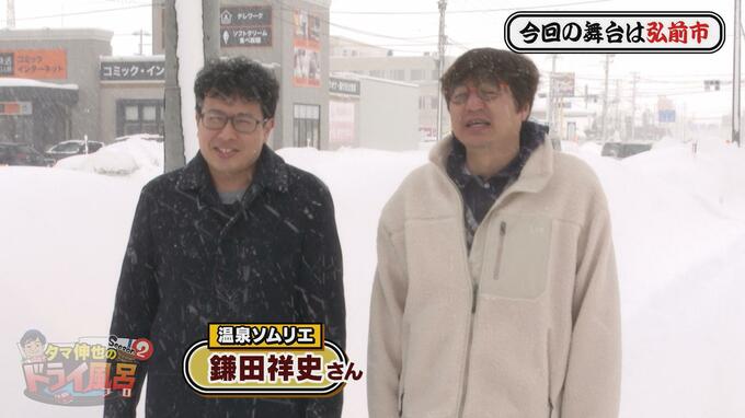 青森の温泉や銭湯まで、青森市出身でミュージシャン&芸人のタマ伸也さんがドライブするシリーズ【ドライ風呂】。2023年4月からの2年間で温泉・銭湯50軒を制覇して、2025年4月に“Season2”がスタート!! ドライ風呂オリジナルタオルを配りながら、まだその魅力をお届けできていない温泉・銭湯を訪ねています。