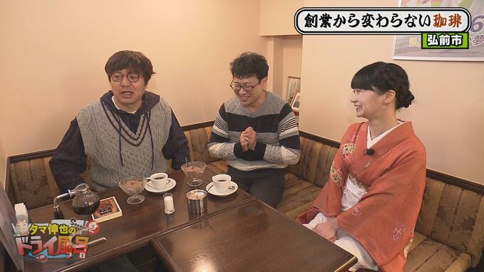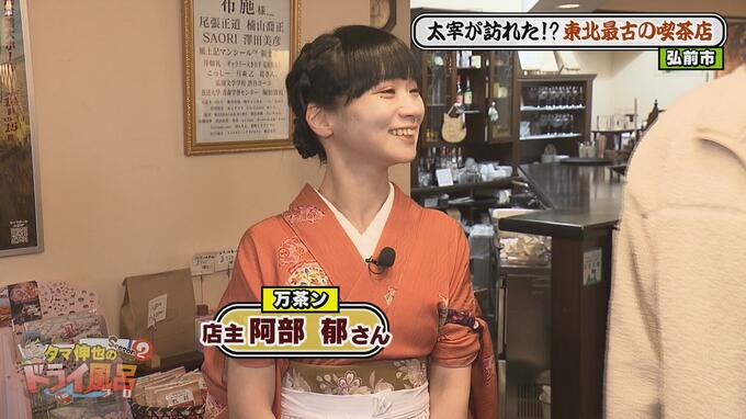 太宰治が学生時代に訪れたというお店『土手の珈琲屋 万茶ン』。昭和4年創業で東北では最も古い喫茶店です。店主の阿部郁さんが出迎えてくれました。