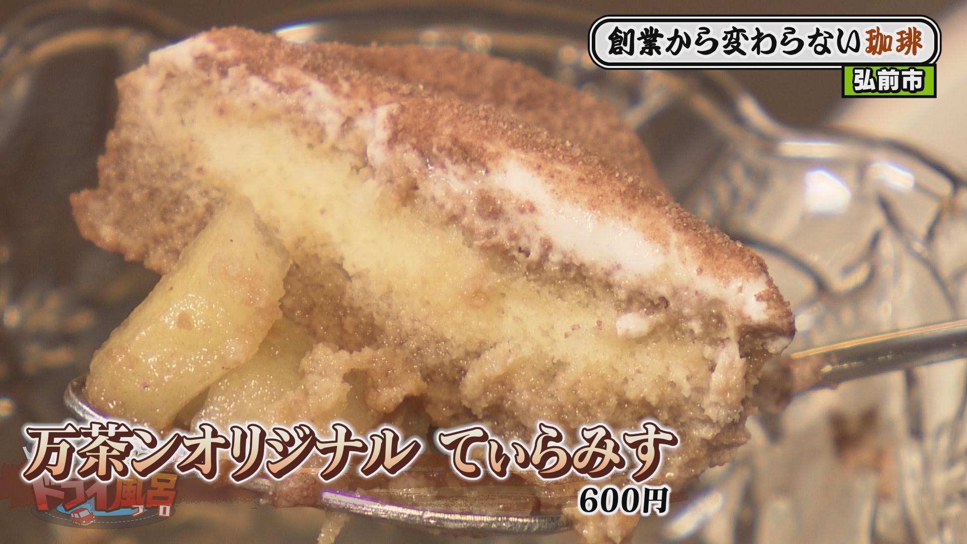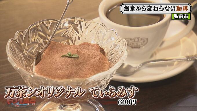 【万茶ンオリジナル てぃらみす】(600円)はスポンジにコーヒーを染み込ませた甘さ控えめの大人の味わいです。