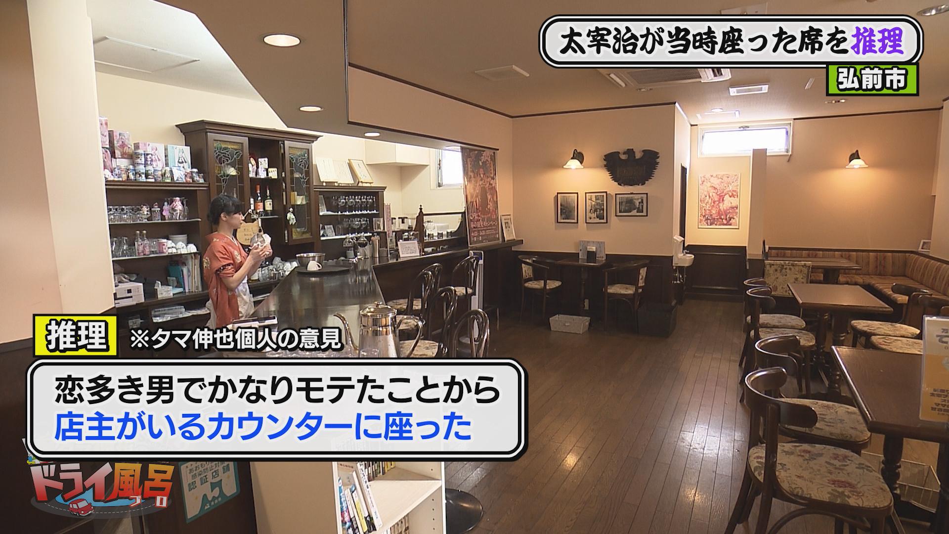 ひとつ目は、太宰治は酒好きで恋多き男でかなりモテたことから、店主がいるカウンター席に座ったのではないかという推理。