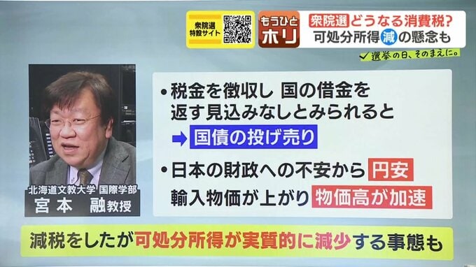▽日本の財政に対する不安から、円が売られて円安に⇒輸入物価が上がり、物価高が加速する。そうなると、「減税したのに、可処分所得が実質的に減少する事態になりかねない」