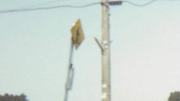 1993年の航空写真では現在の場所に標識は写っていませんでしたが、当時の住民が撮影した写真には、今とは別の場所に立つあの標識の姿がありました。