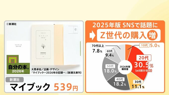 マイブックの2025年版がSNSで話題になったことで、20代の若い層、特に女性がこぞって買い求めるようになり、購買が伸びているといいます。