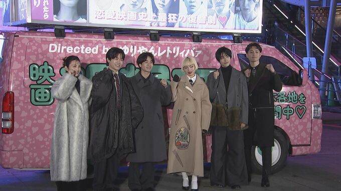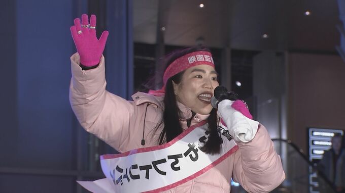 キャストにつづき、ピンクの街宣カーに乗って登場したゆりやんさんは寒風吹きすさぶ新宿・歌舞伎町で20分以上に及ぶ選挙さながらの大演説をしました。