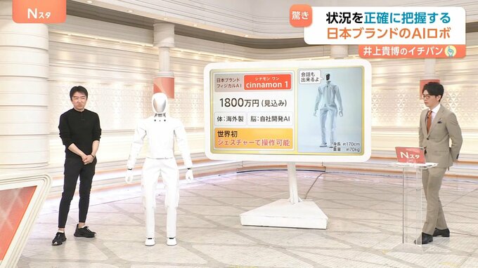 小型のロボットだとダンスやバク転ができますが、「cinnamon1」は人の仕事を代替するために作られたロボットです。しっかり仕事ができるよう、ヒトと同じくらいの身長・体重で作りました。