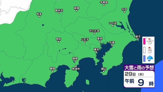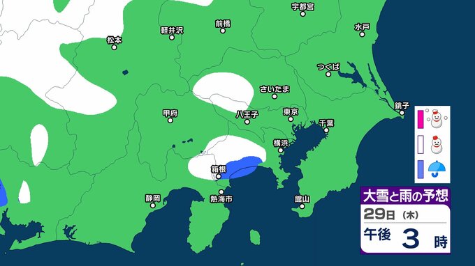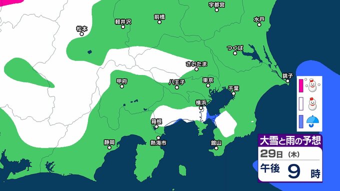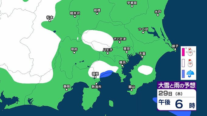 29日6時から30日6時までに予想される24時間降雪量は多い所で、