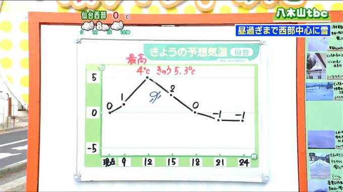 気温はこのあと寒気の影響であまり上がらず、最高気温は仙台で4℃などと、28日と同じか若干低め、平年よりも少し低めのところが多くなりそうです。このあと西寄りの風もやや強めに吹いてきますので、マフラーや手袋などが手放せない体感が続くでしょう。