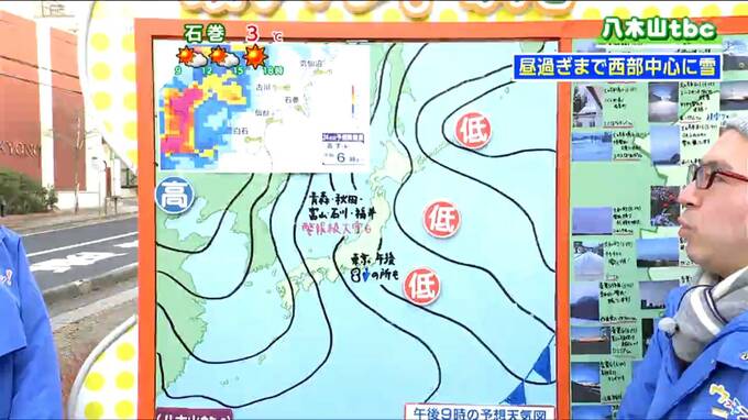 天気図を見ると、29日は西高東低の冬型の気圧配置が続き、上空の寒気が28日よりも強まってきます。このため、青森県や秋田県、北陸地方などでは警報級の大雪となるおそれもあります。東京でも午後は少し雪や雨が降るところがあるとみられています。