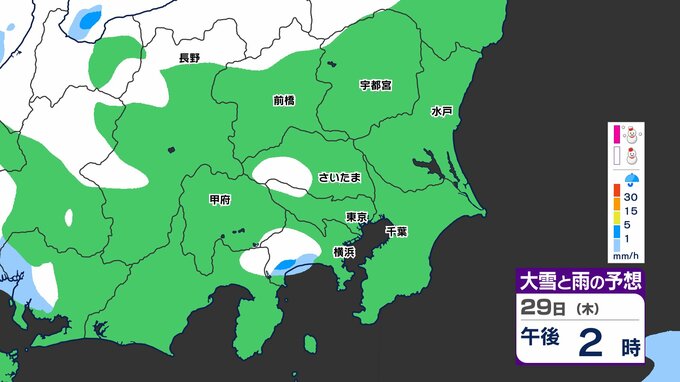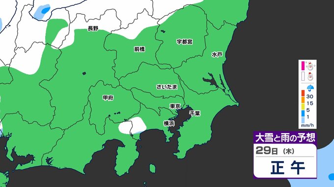 ▶29日(木)6時~30日(金)6時に予想される24時間降雪量は多い所で、