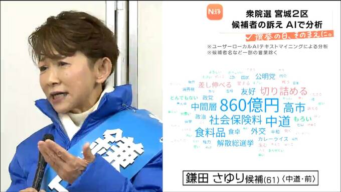 中道改革連合の前職、鎌田さゆりさんです。最も大きくなったのは「860億円」。今回の選挙にかかる費用だとして強く訴えました。また、新党の名前「中道」も繰り返しアピールしていました。