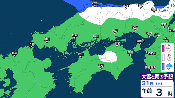 【雪】中国・四国地方ではいつ降る?広島・岡山・山口・鳥取・島根・香川・愛媛・高知・徳島 29日(水)~2月3日(火)雪雨シミュレーション【気象庁 29日】 RSK山陽放送 2026年1月29日(木) 10:37 国内 天気 31日(土) 3日(火)までの雪雨シミュレーション 16 17 18 19 20 21 22