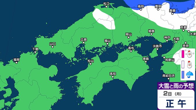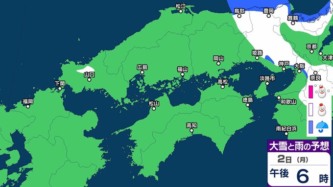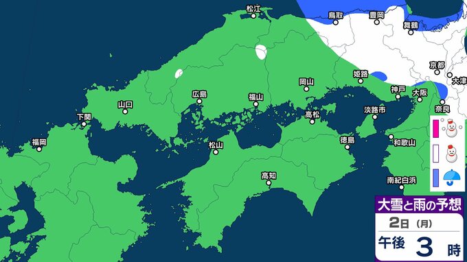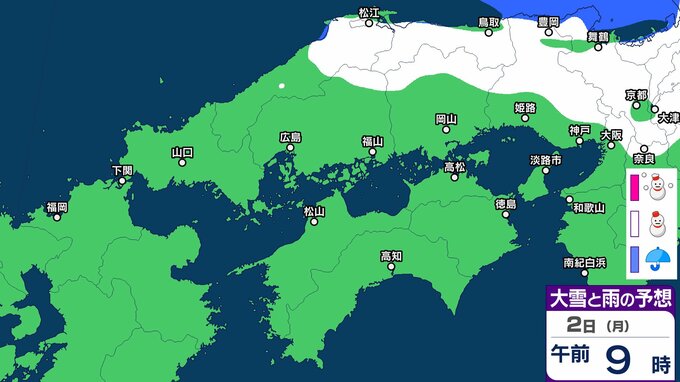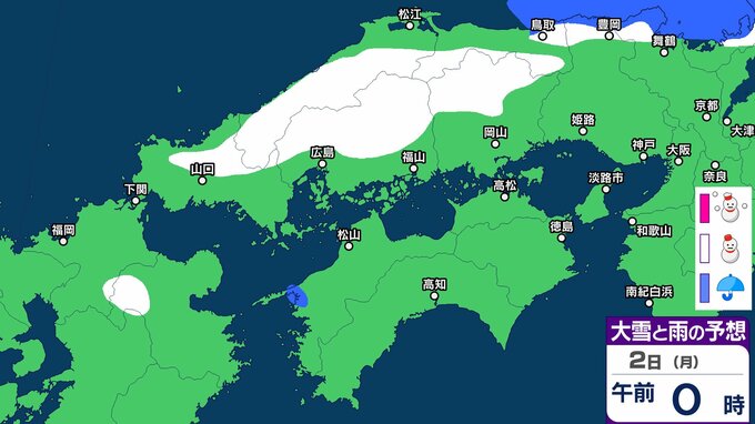 【雪】中国・四国地方ではいつ降る?広島・岡山・山口・鳥取・島根・香川・愛媛・高知・徳島 29日(水)~2月3日(火)雪雨シミュレーション【気象庁 29日】 RSK山陽放送 2026年1月29日(木) 10:37 国内 天気 2日(月) 3日(火)までの雪雨シミュレーション 32 33 34 35 36 37 38