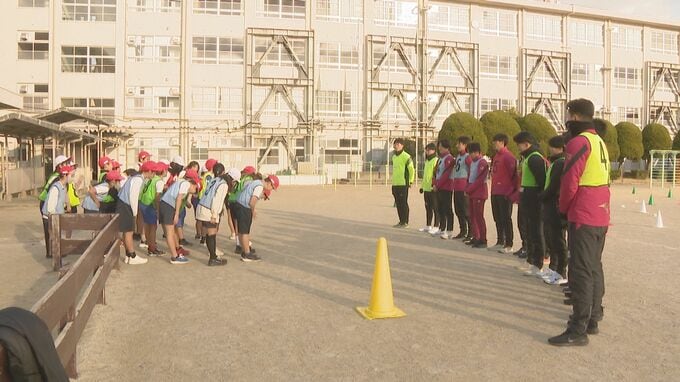 福岡市南区の弥永小学校で体育の授業をしたのは福岡大学サッカー部の部員13人です。